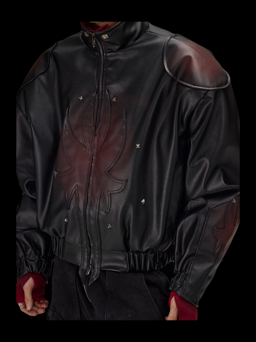 Flyerrer 25AW "Eye of Thorns" Short Leather Jacket with Black-White Contrast Embroidery FR303