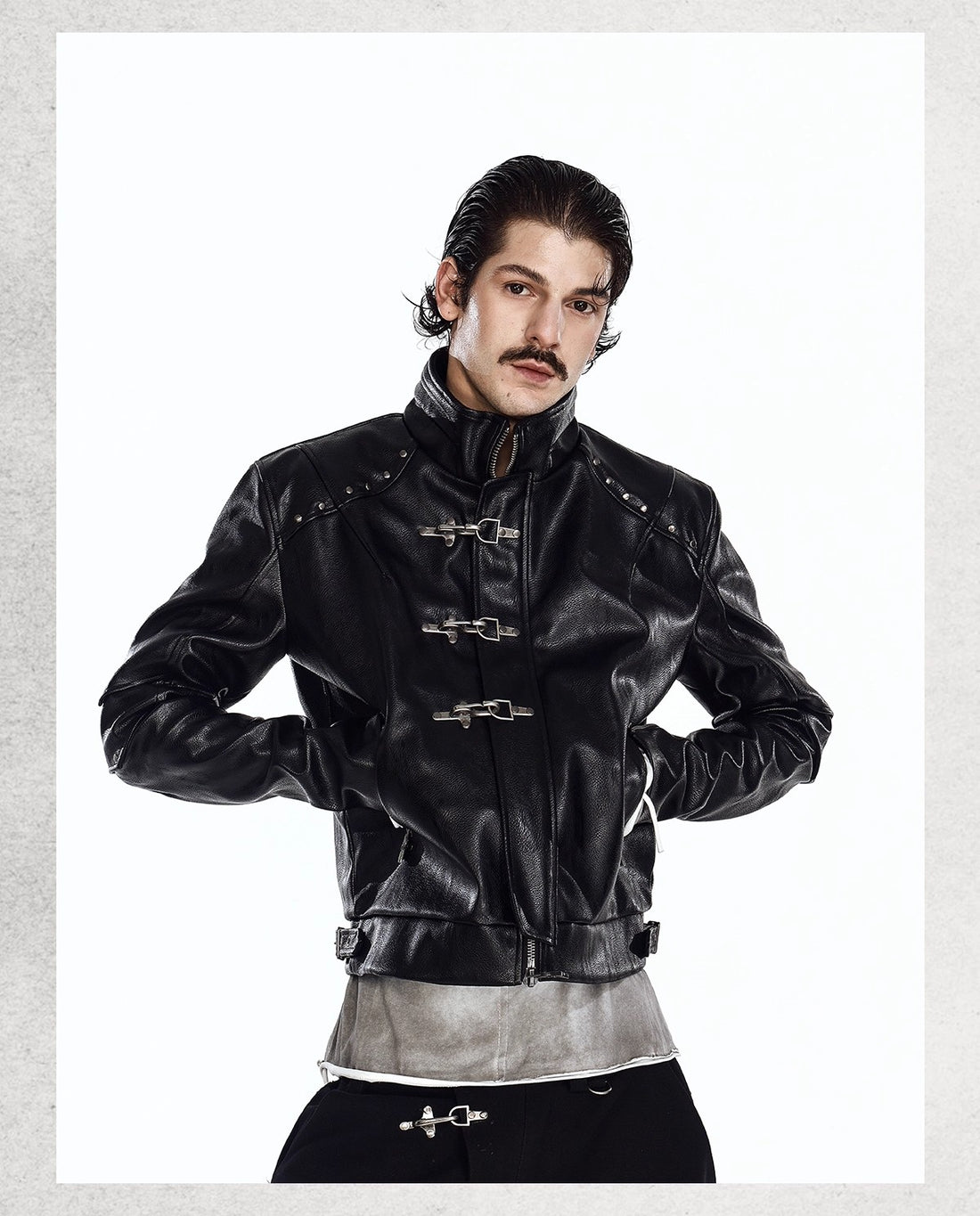 lyerrer 25AW "The Messenger" Men’s Deconstructed Leather Flight Jacket with Airplane Buckle