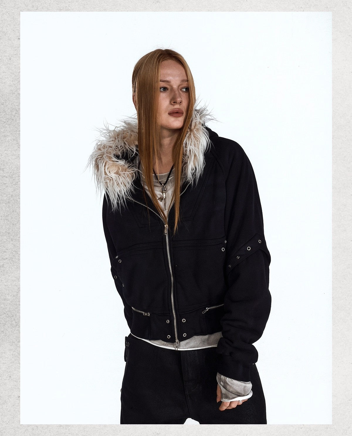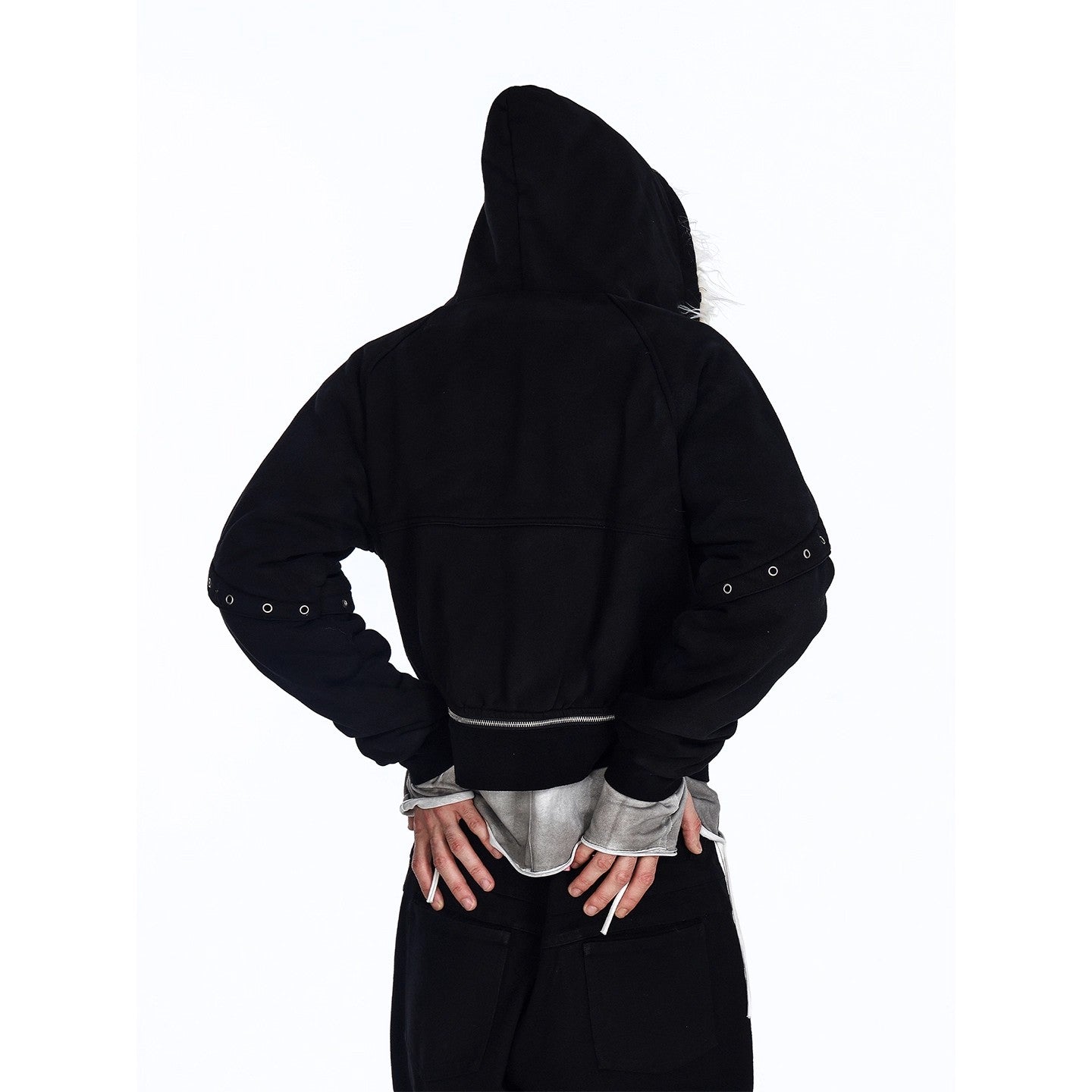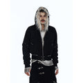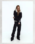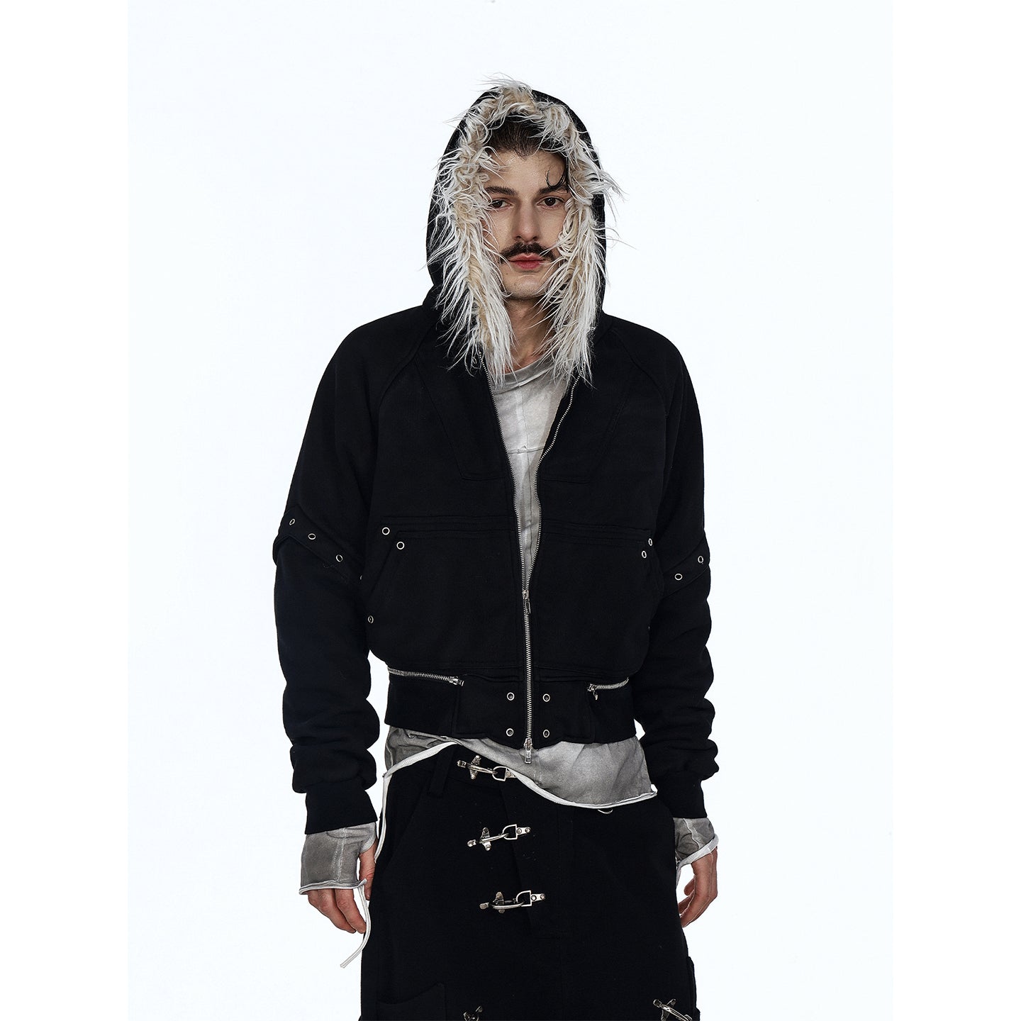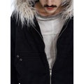 Flyerrer 25AW Asymmetric Distressed Short Hooded Cotton Jacket w/ Removable Fur Collar