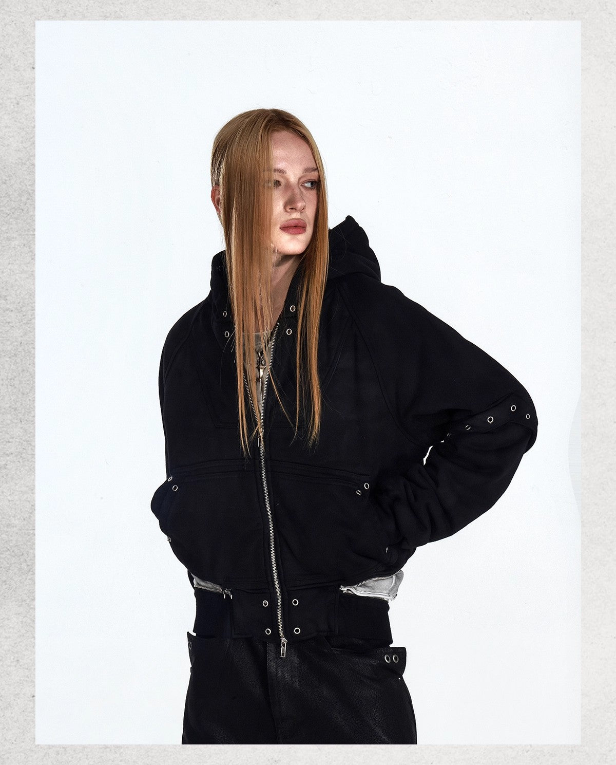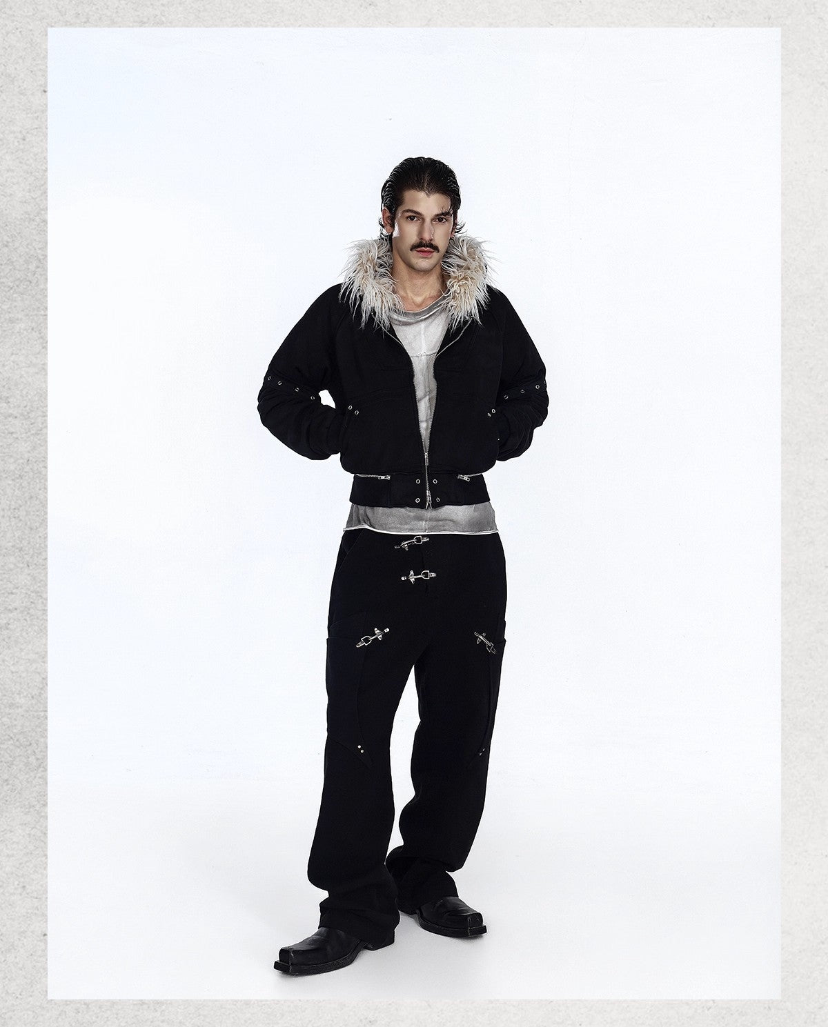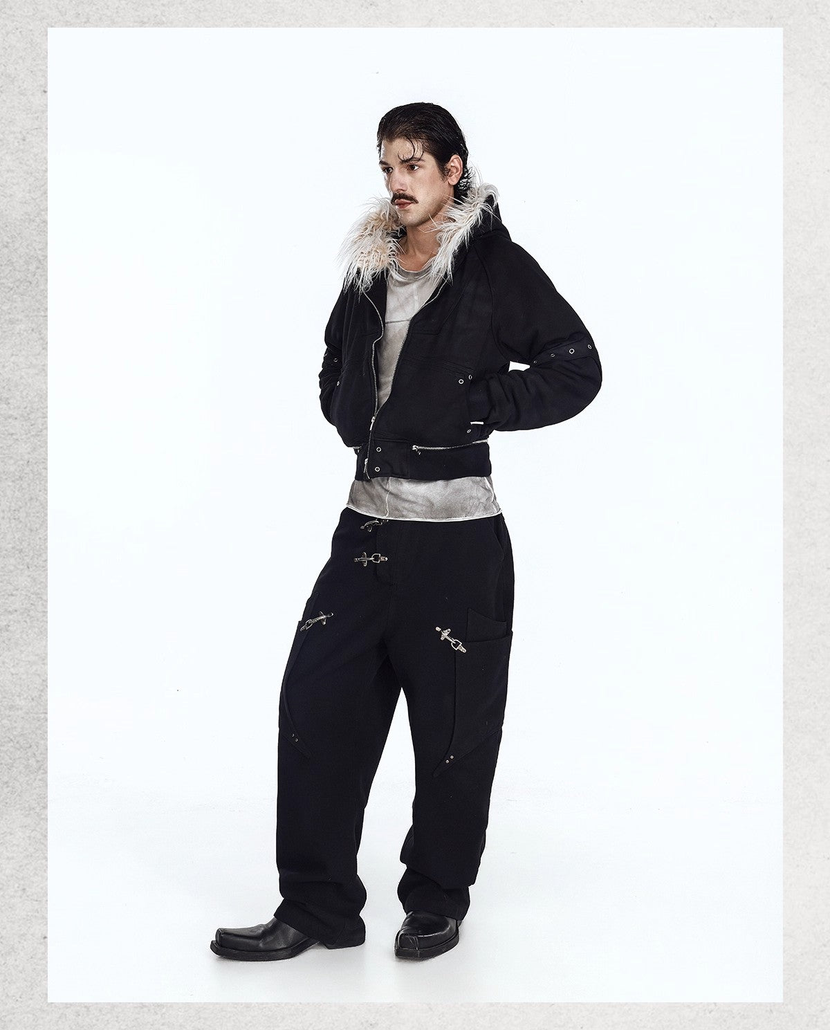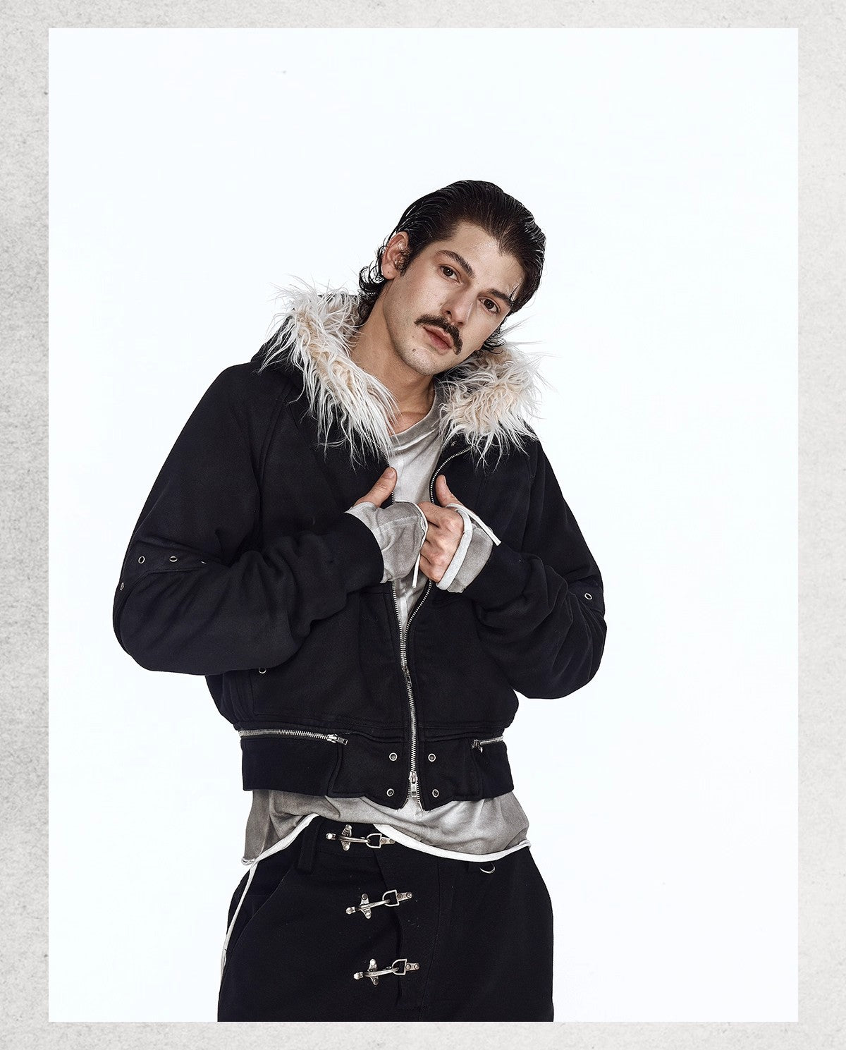 Flyerrer 25AW Asymmetric Distressed Short Hooded Cotton Jacket w/ Removable Fur Collar