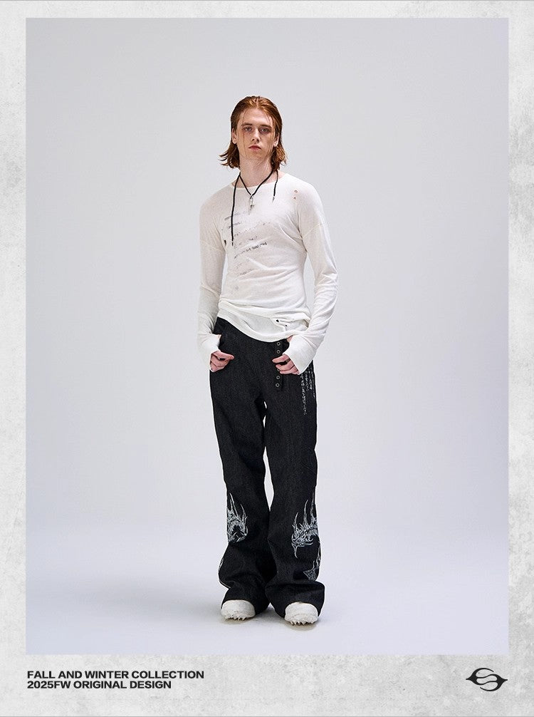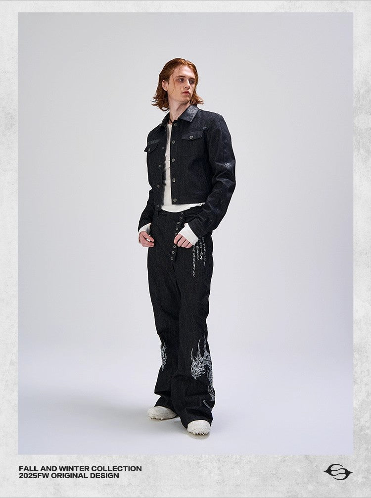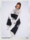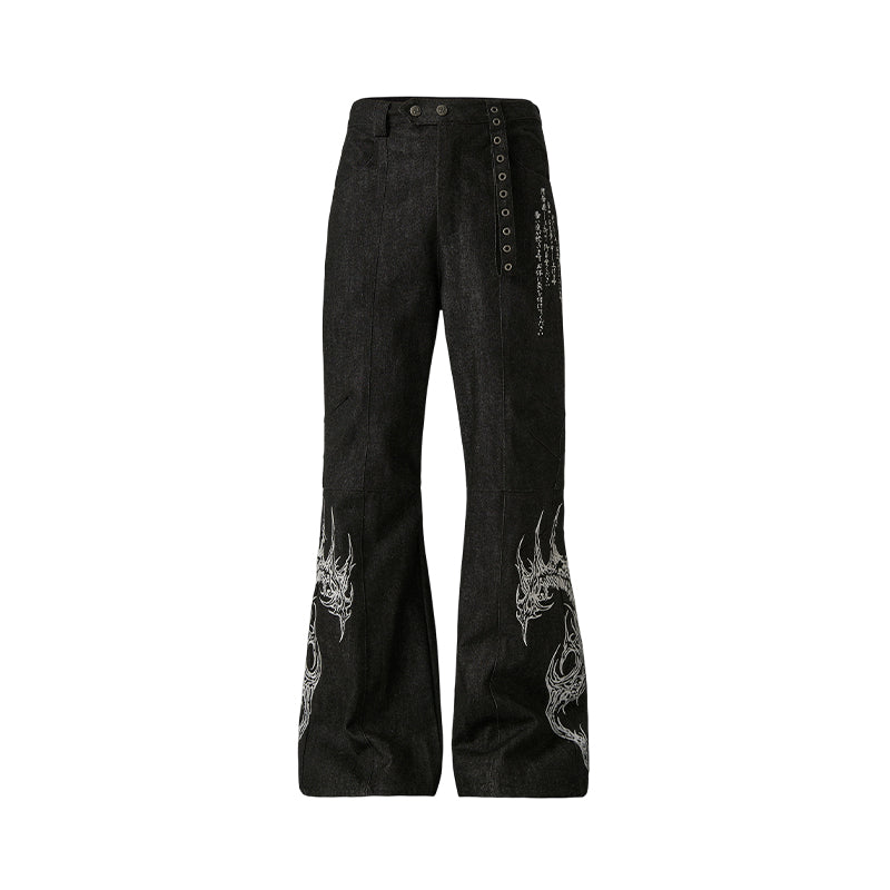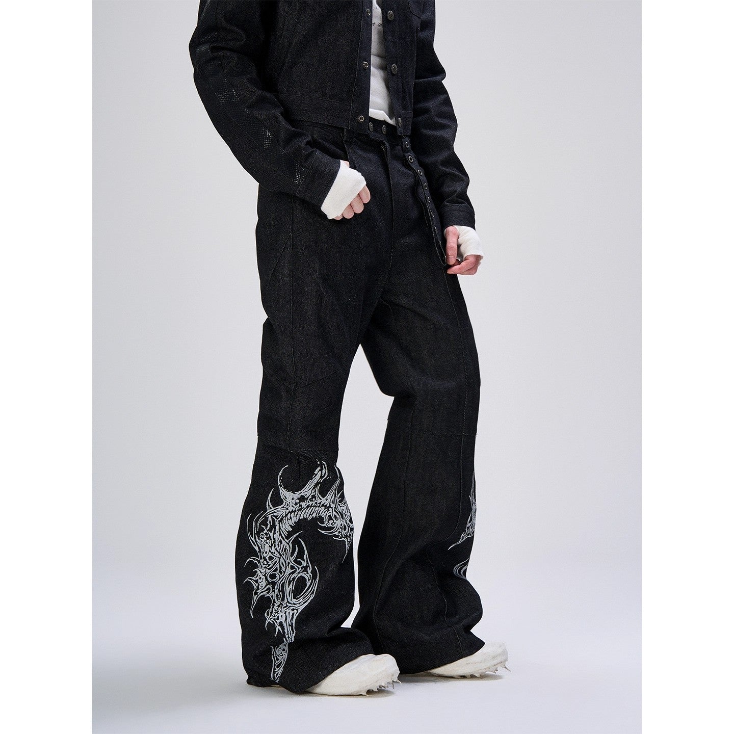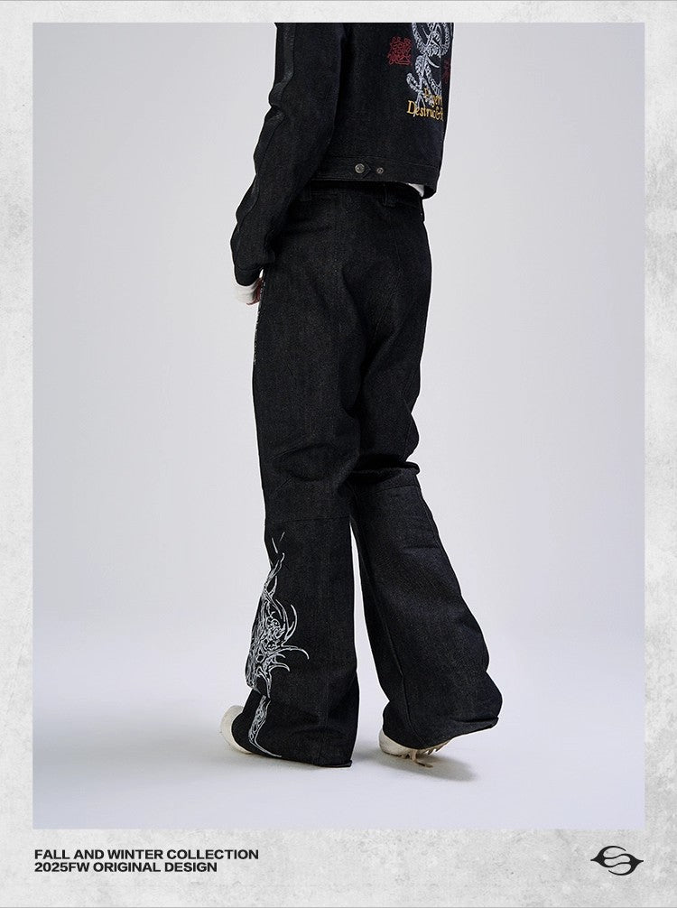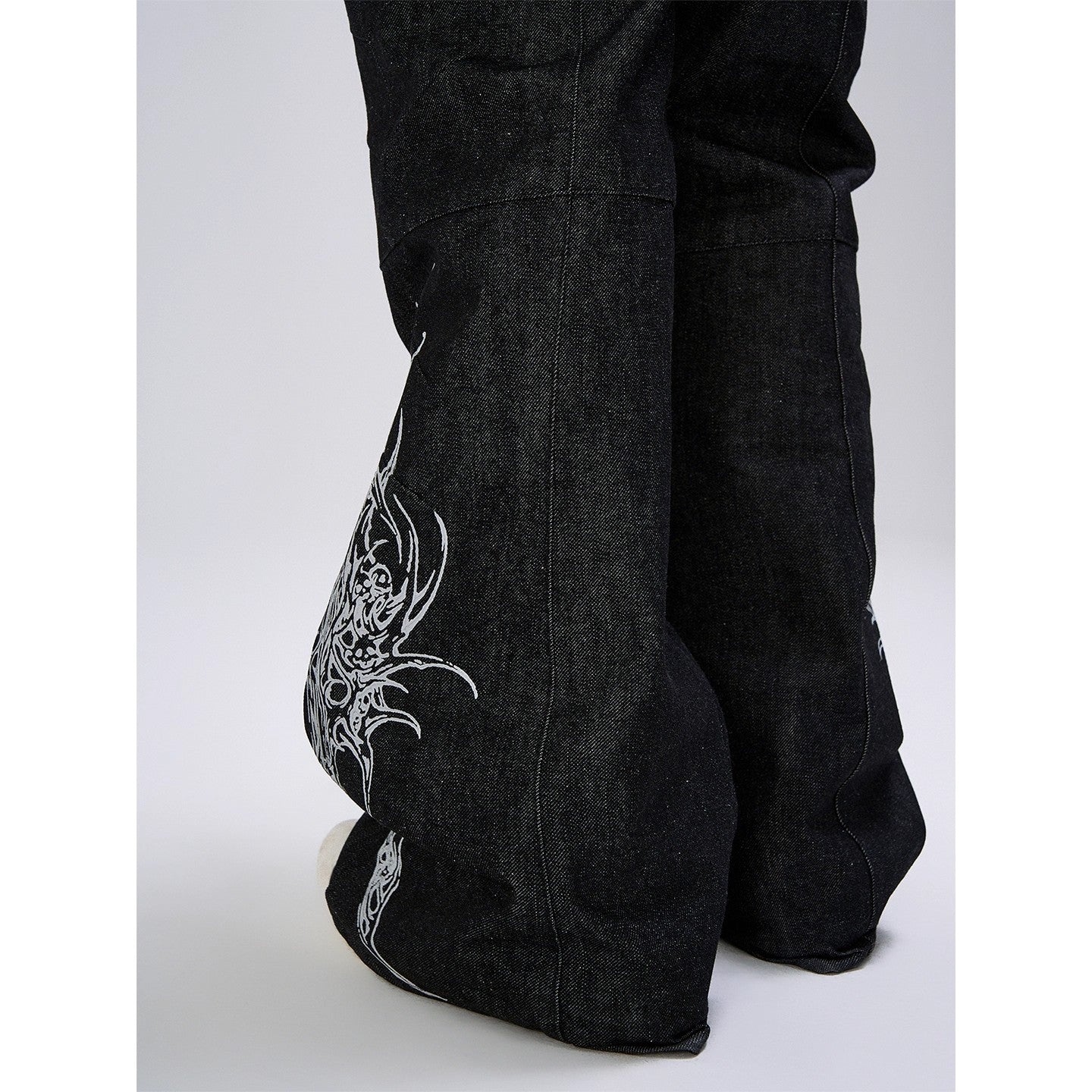 Flyerrer 25AW Concept-Designed Raw Denim Bootcut Jeans with Niche Print Accents