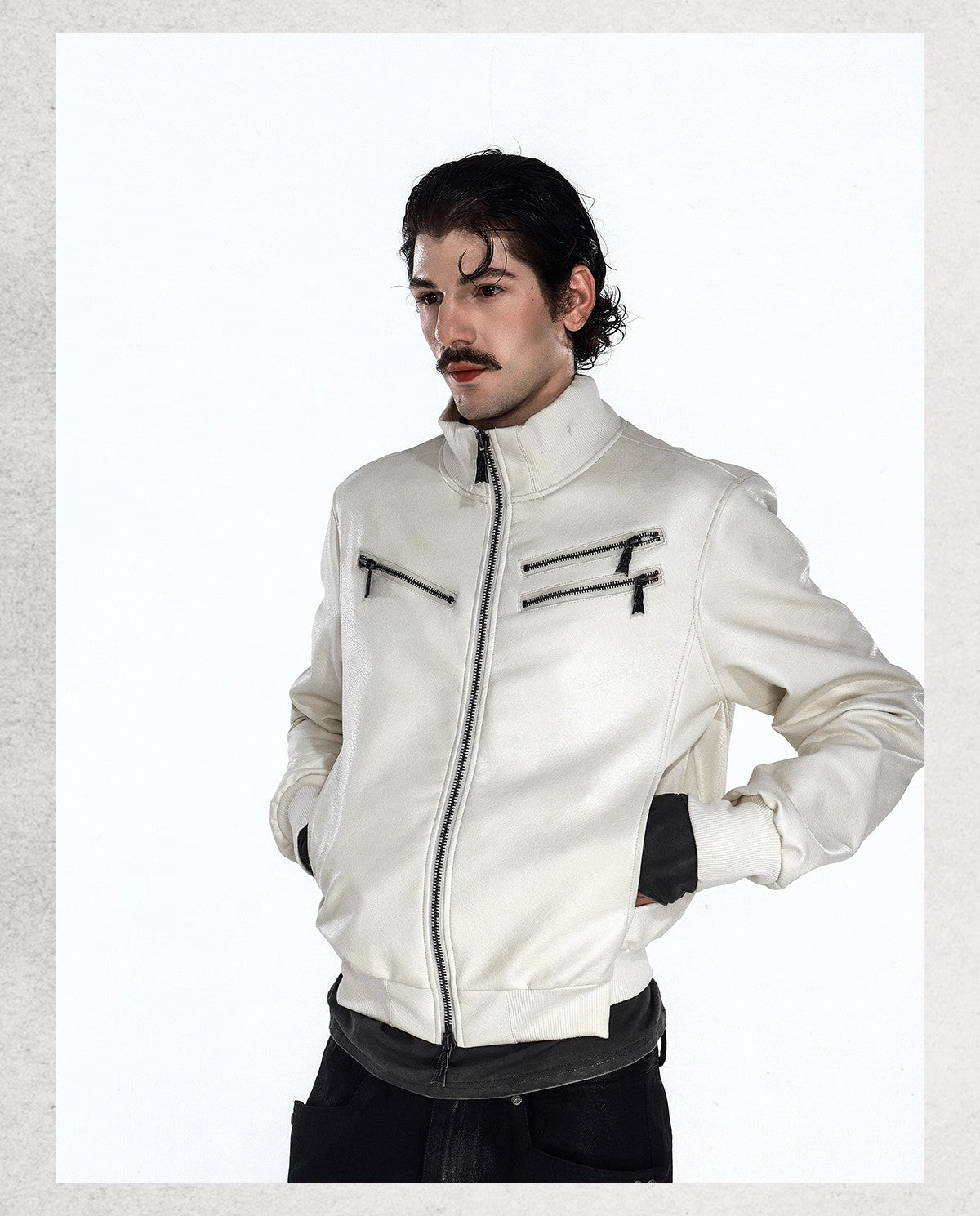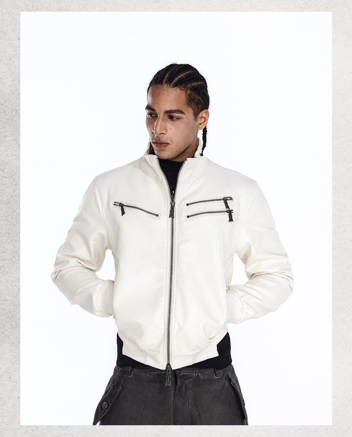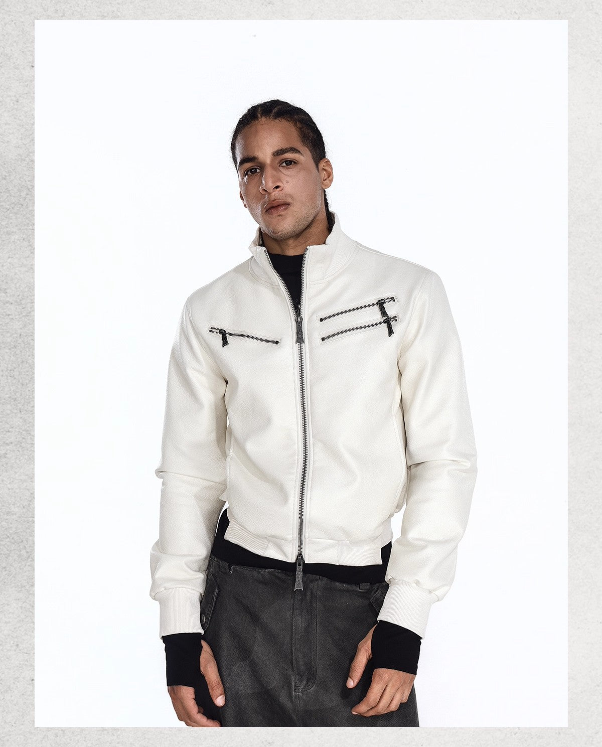Flyerrer 25AW "Eye of Thorns" Short Leather Jacket with Black-White Contrast Embroidery