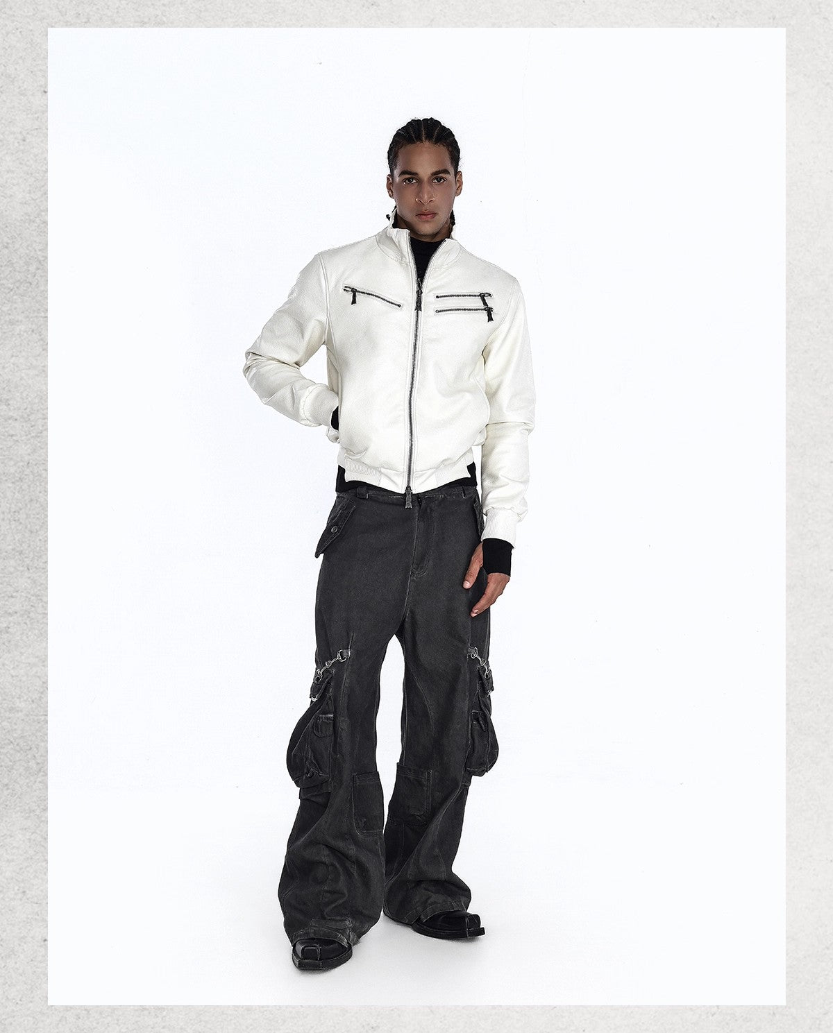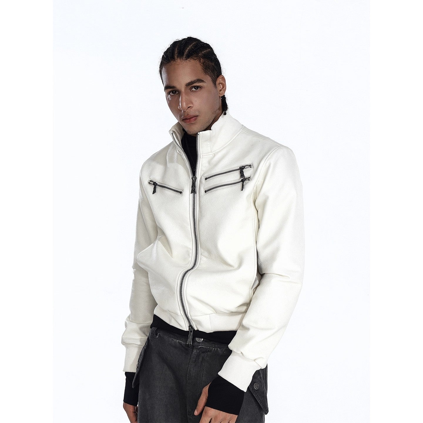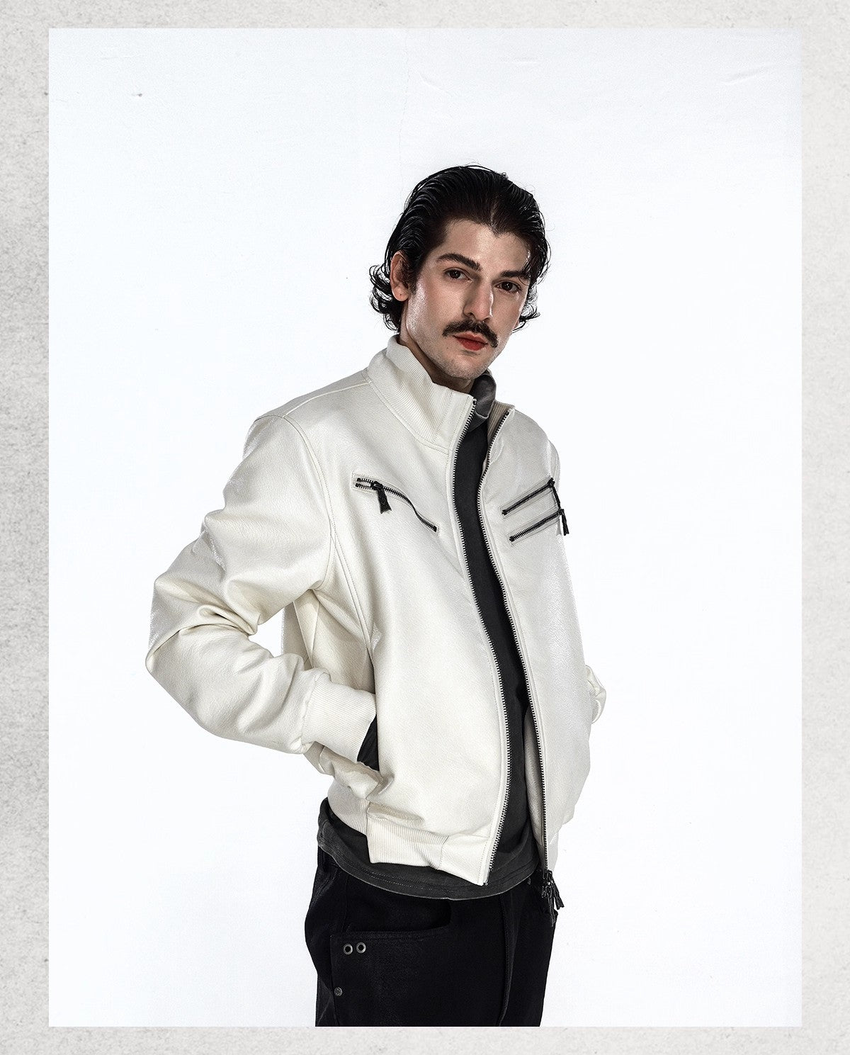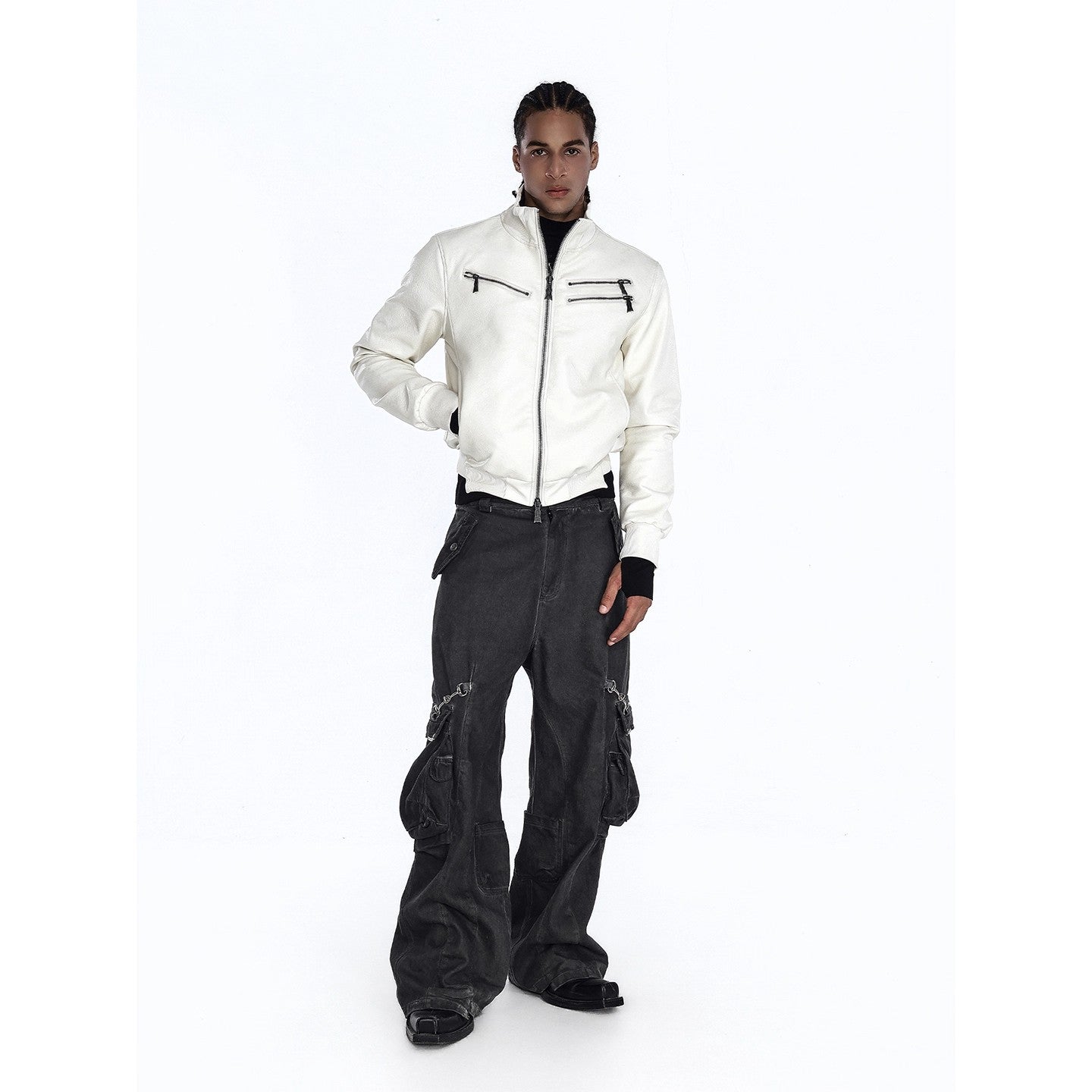 Flyerrer 25AW "Eye of Thorns" Short Leather Jacket with Black-White Contrast Embroidery