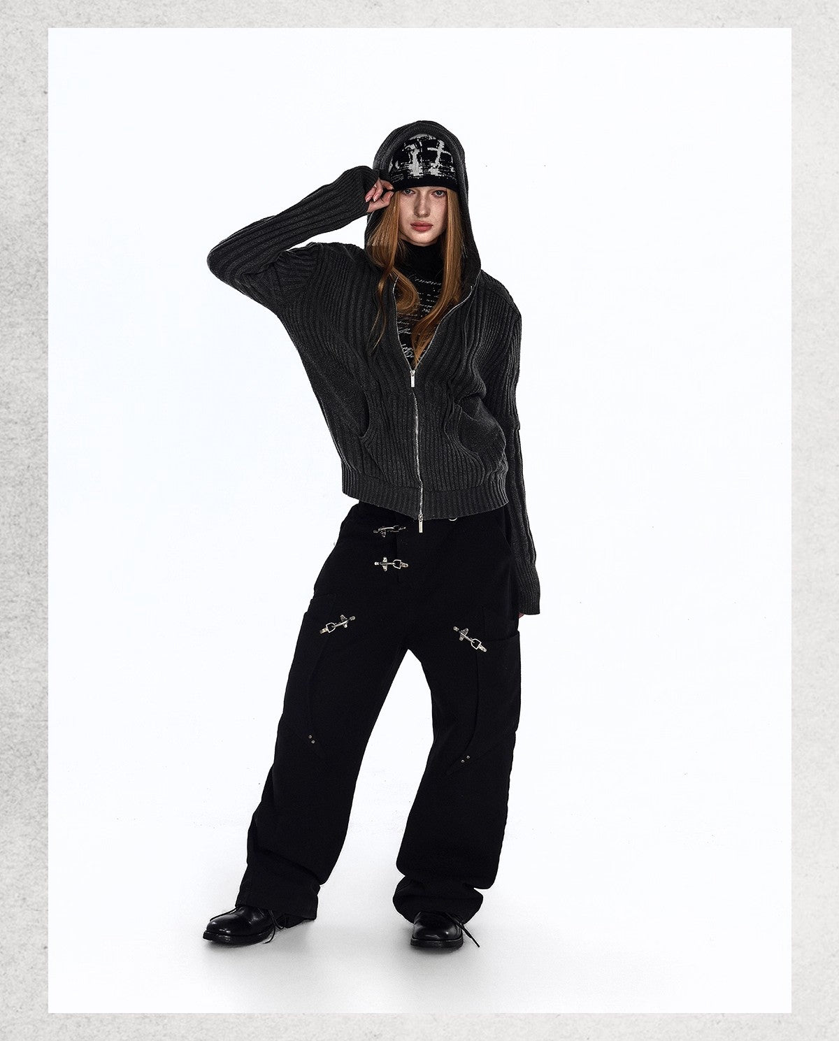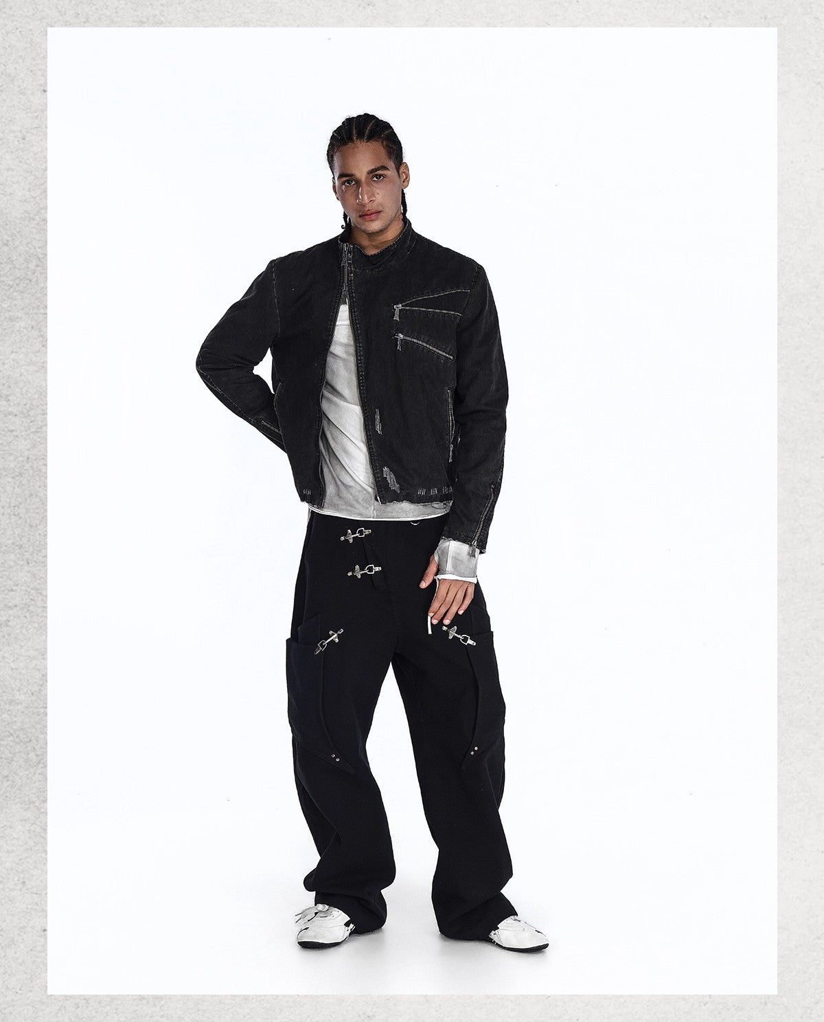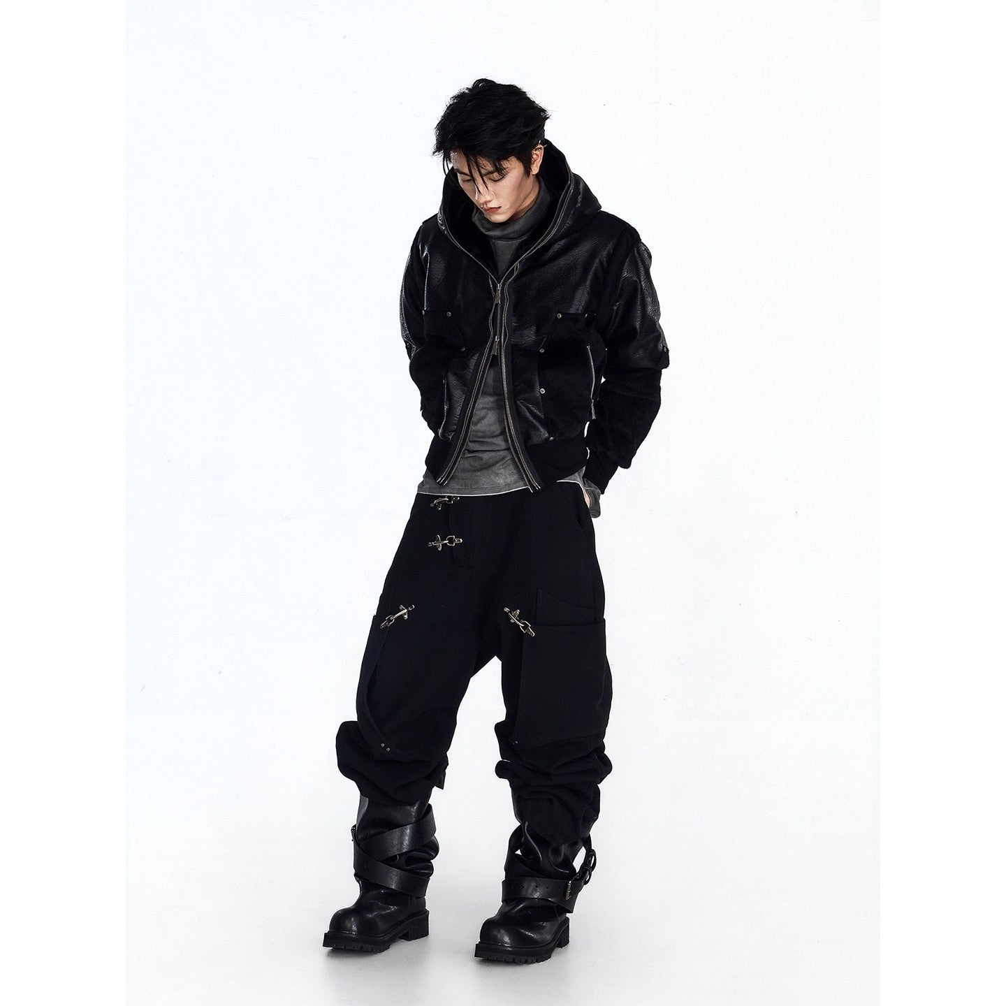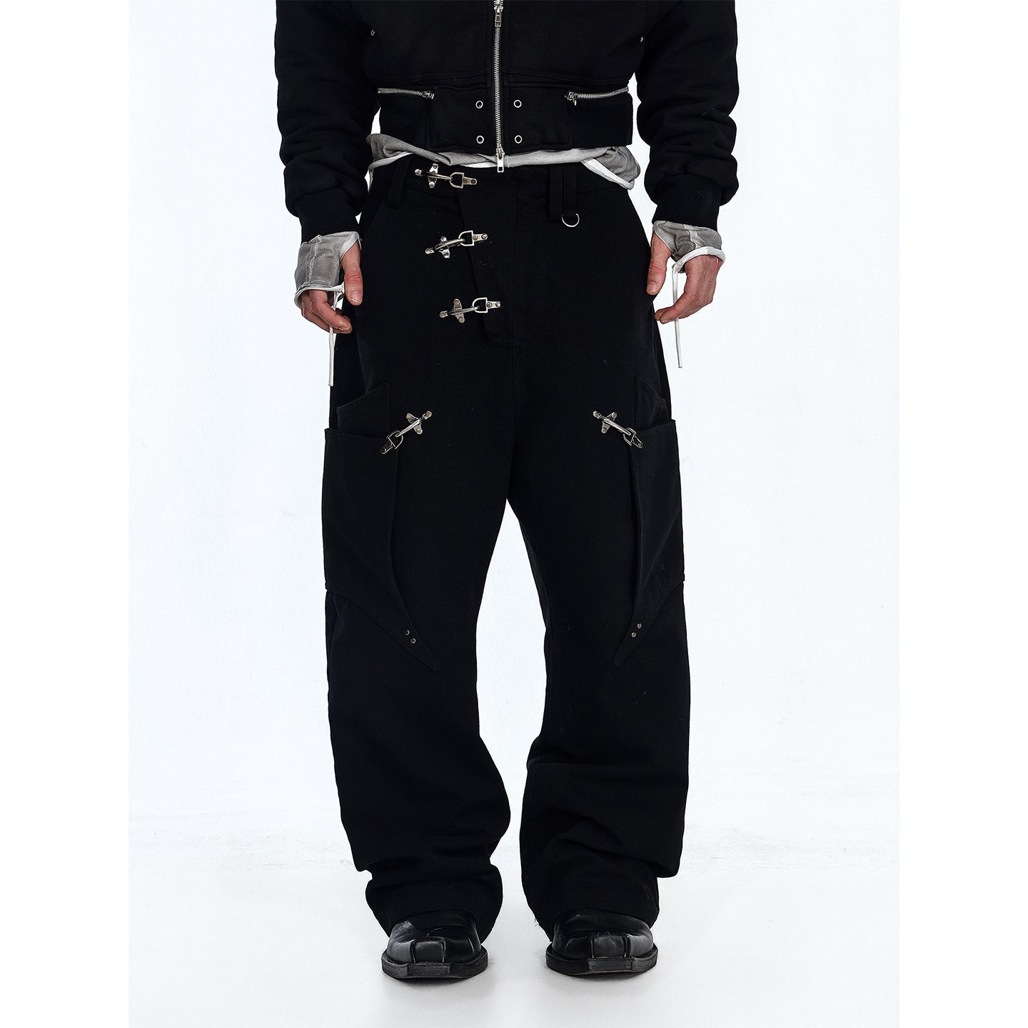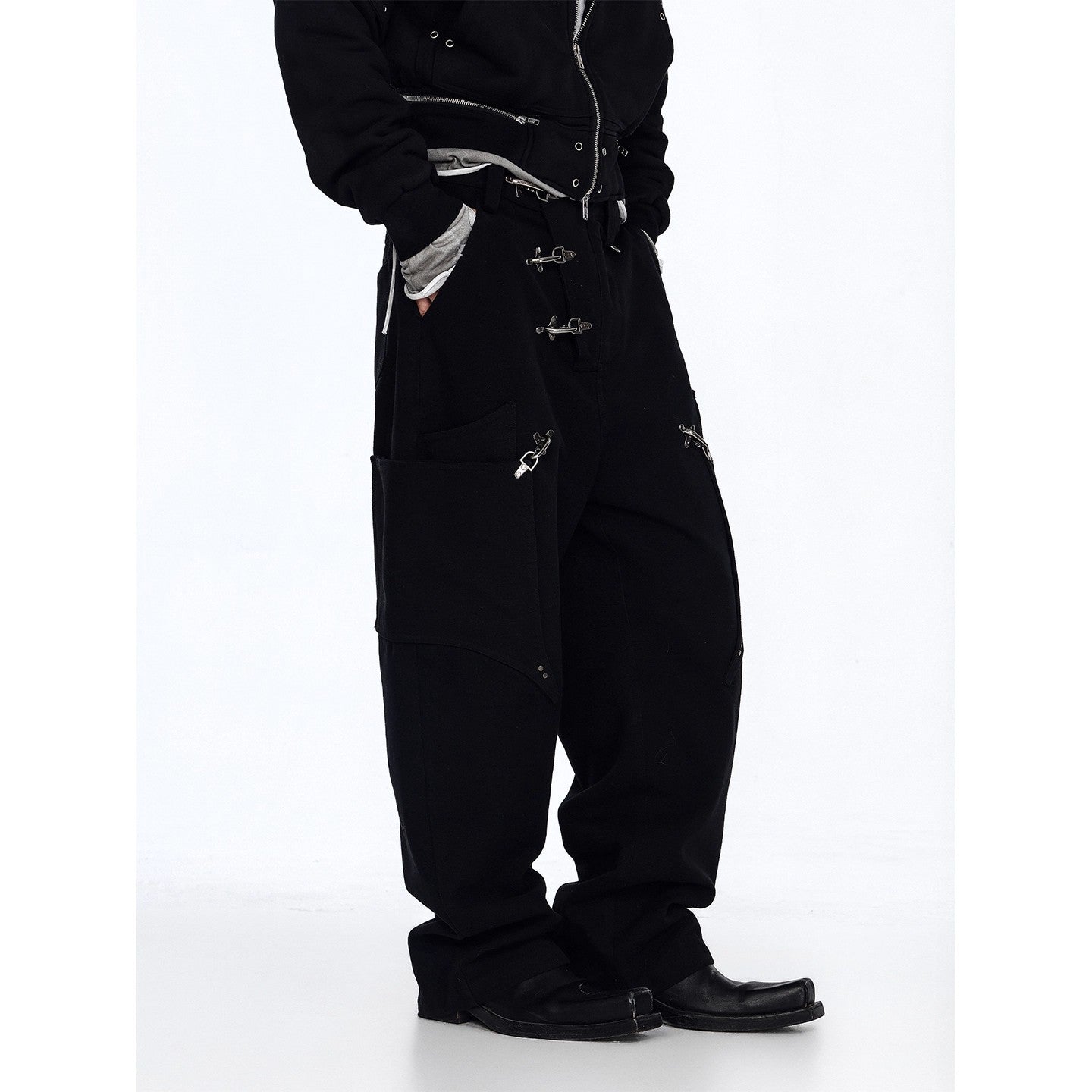 Flyerrer 25AW Niche American-Style Oversized Curved Black Denim Jeans with Airplane Buckle